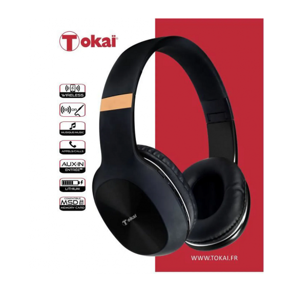 CASQUE SANS FIL TOKAI CA159N - Connectivité Bluetooth 5.0 - Pliable - Fonctions Musique et AUX-IN - Entrée carte mémoire Micro SD pour fichiers MP3 - Connexion sans fil ou par câble jack 3.5 mm - Batterie 250mAh - Autonomie jusqu'à 6 heures - Couleur Noir